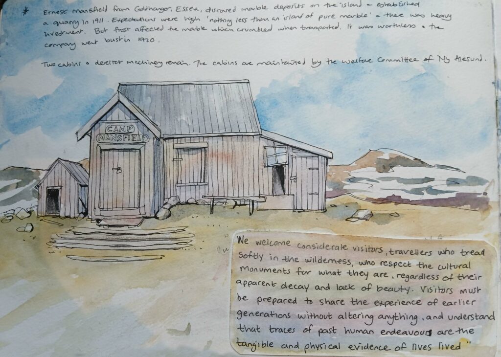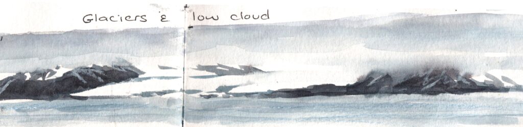 And that clear Arctic air is not as pure as it feels. Local safeguards can’t fight global problems. As we sailed the islands for pleasure, sketching the pristine-looking landscape, I thought of the team of researchers from GAPS (Global Atmospheric Plastics Survey) currently working high in the Svalbard glaciers, taking samples and trying to find out more about microplastics. We know that they are everywhere, in the food we eat and the air we breathe. The GAPS team want to try and understand just what they are, how they travel, and how far they go. The project is led by Dr Al Gill who is rather good at taking on impossible tasks. Find out more from the website https://www.gaps2024.com/ which explains it in proper detail – instagram is a good way to keep up to date with current projects. Who knows – maybe you know someone who could help?